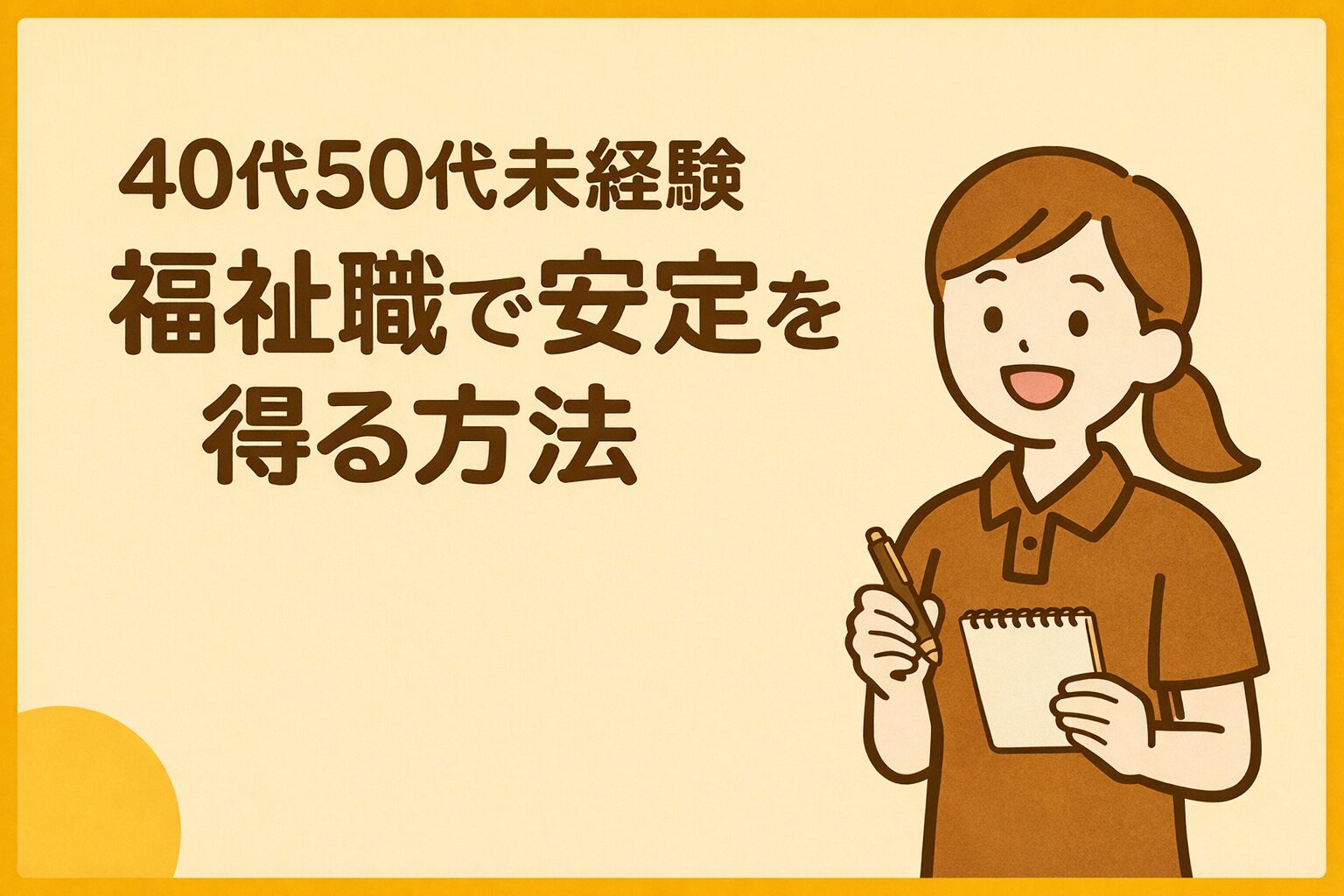 40代・50代の未経験転職は遅くありません。むしろ、人生経験が活きる福祉職だからこそ、この年代からのスタートにも意味があると思います。